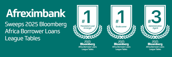 The African Export-Import Bank (Afreximbank) has reaffirmed its dominance in African capital markets, securing the Number 1 position as both Mandated Lead Arranger and Bookrunner in the 2025 Bloomberg Africa Borrower Loans League Tables.