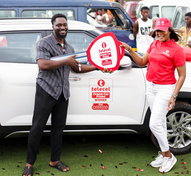 The Kaneshie Market in Accra erupted into cheers and excitement as Telecel Ghana presented a brand-new Hyundai Creta as grand prize to the 14th cycle winner of its SMS-based trivia competition, Dream Car promo.
