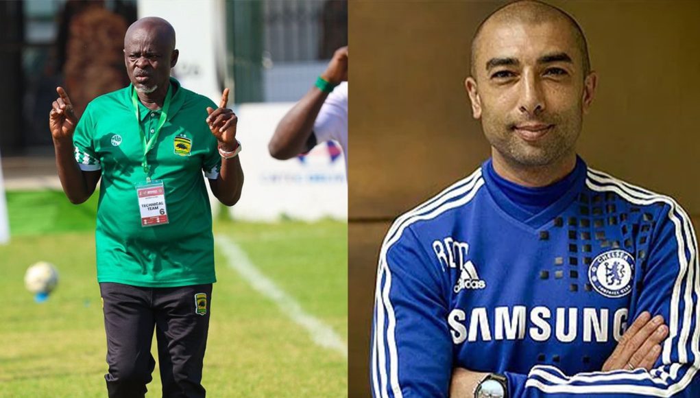 Asante Kotoko caretaker coach Prince Yaw Owusu (left) and Roberto Di Matteo (right) at Chelsea in 2012