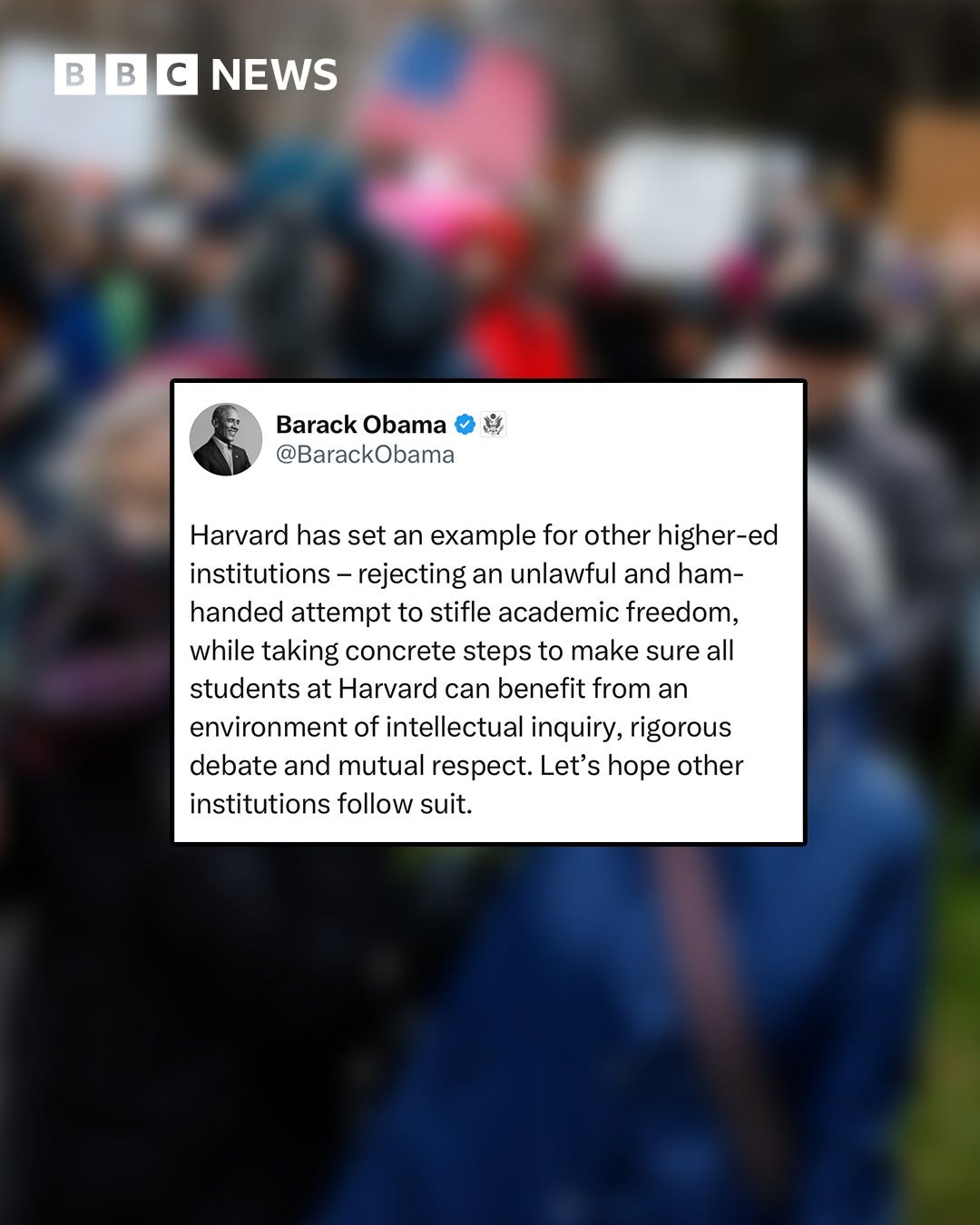 Barack Obama has described the White House’s demands for Harvard University to alter its policies or risk losing federal funding as “unlawful” in an X post he made on 15th April.