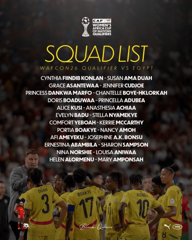 Black Queens head coach Kim Lars Bjorkegren has announced his 24-woman squad ahead of the crucial Women’s Africa Cup of Nations (WAFCON) Qualifiers against Egypt.