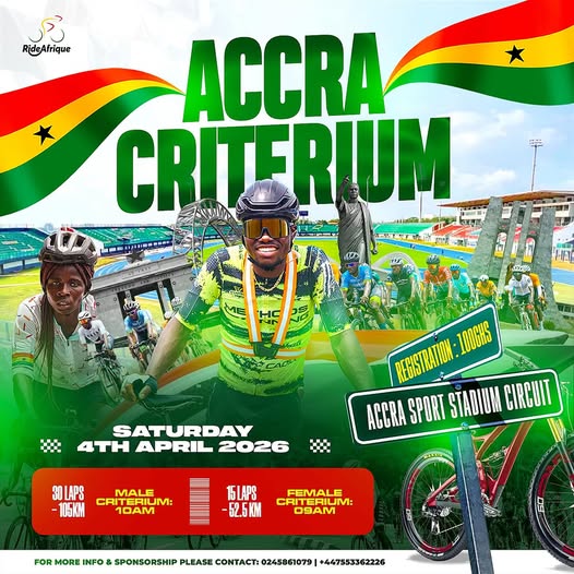 The Ride Afrique Accra Criterium 2026, billed as The BlackStar Experience, is set to return on Saturday, 4th April 2026, at the Accra Sports Stadium Circuit, promising one of Africa’s most thrilling urban cycling events.