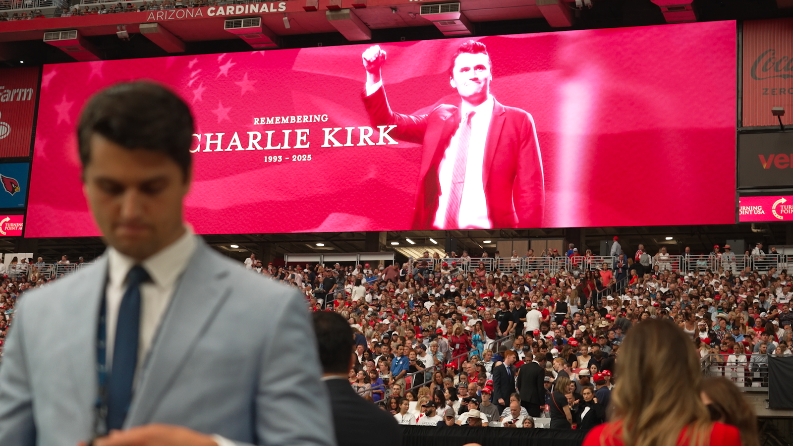 In Glendale, Arizona, people have spent the night camping outside the State Farm Stadium, “a bit of a party” according to one of them, to make sure they get a seat for the official memorial for Charlie Kirk.