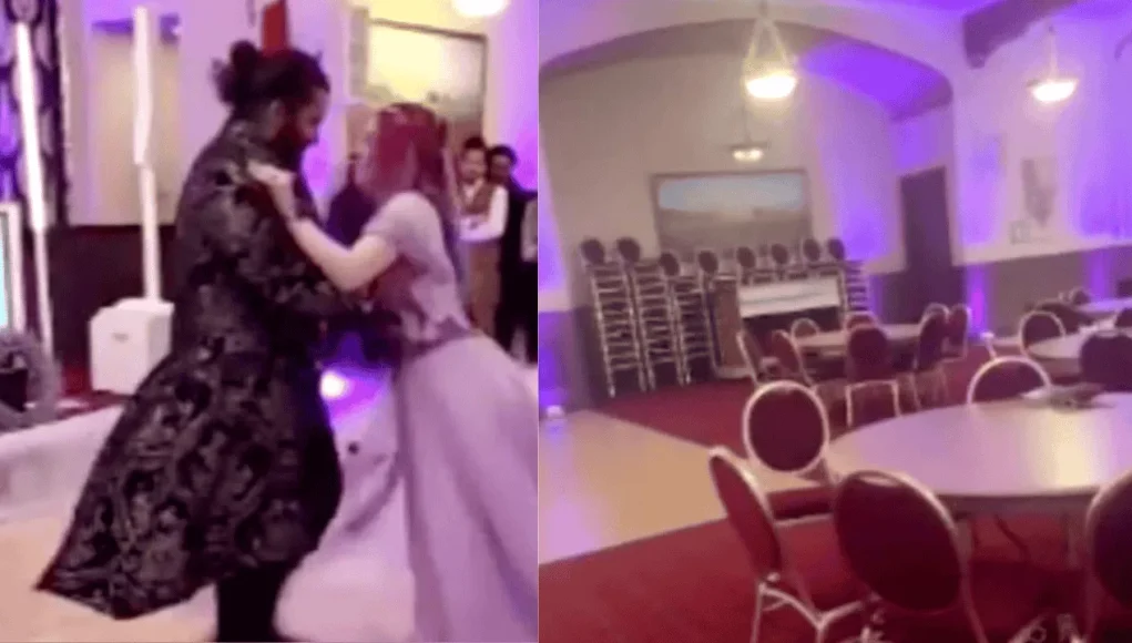 The brief clip also showcased the sight of an almost empty venue, with rows of vacant tables laid out for guests who never arrived.