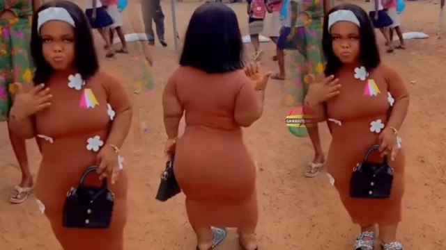 In the video, one could see Shortingo jamming to one of Shatta Wale’s popular songs as people around continued to look at her.
