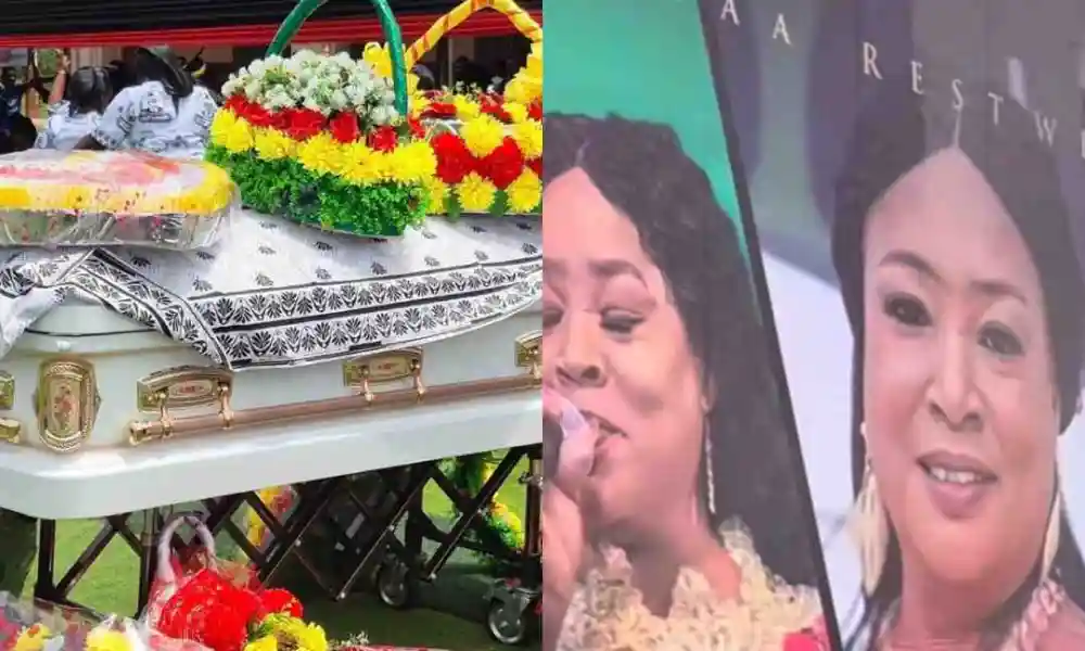 The funeral rites of the late Ghanaian gospel musician, Maame Tiwaa, are currently underway today, April 11, at the Bantama Presbyterian Park in Kumasi, drawing a large gathering of mourners from across the country.