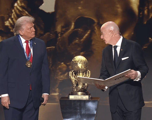 In his acceptance speech, Trump praised the universal appeal of soccer, calling it “a remarkable force that brings people together beyond borders and differences.”