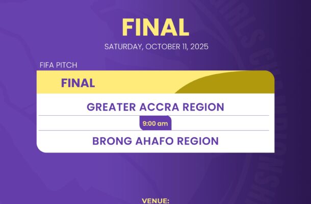 The final of the second edition of the Elite U15 Girls’ Tournament is scheduled to take place on Saturday, October 11, 2025, at the Ghanaman Soccer Centre of Excellence in Prampram.