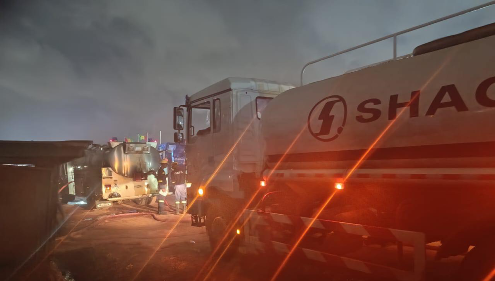 A 20,000-litre water tanker from the Ashaiman Municipal Assembly was deployed to the scene to support ongoing firefighting operations.