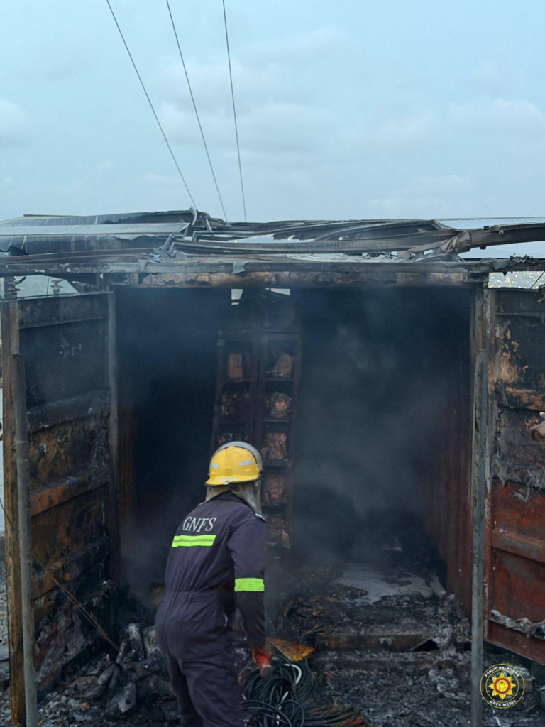 According to a post shared on Facbook by Ghana National Fire Service (GNFS), the blaze, which posed a significant threat due to the volatile nature of the lithium batteries, was contained by the GNFS.