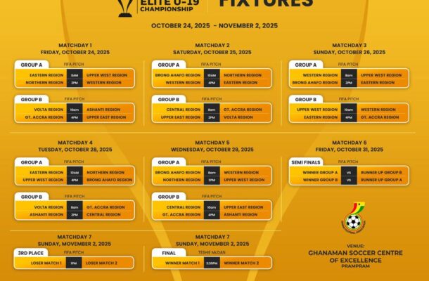 The complete fixtures for the inaugural MTN Elite Under-19 Championship have been officially released, setting the stage for an exciting display of youth football at the Ghanaman Soccer Centre of Excellence in Prampram.