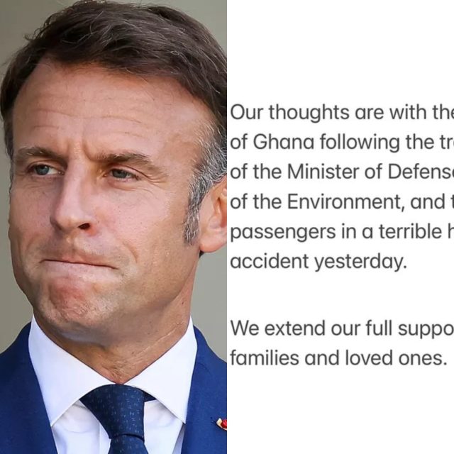 French President Emmanuel Macron has extended his heartfelt condolences to the people of Ghana following the tragic helicopter crash that claimed the lives of Ghana’s Defence Minister Dr. Edward Omane Boamah and several other high-ranking government officials.