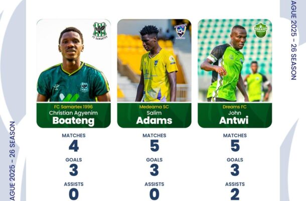 Among them, John Antwi emerges as the frontrunner, based on his impressive stats in the Premier League: five appearances, three goals, and two assists for Dreams FC.