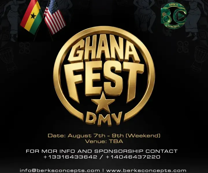 The vibrant spirit of Ghana is heading to the DMV as Berk’s Concepts presents Ghana Fest DMV, a spectacular three-day celebration of Ghanaian culture, music, and heritage scheduled for August 7th–9th (weekend).