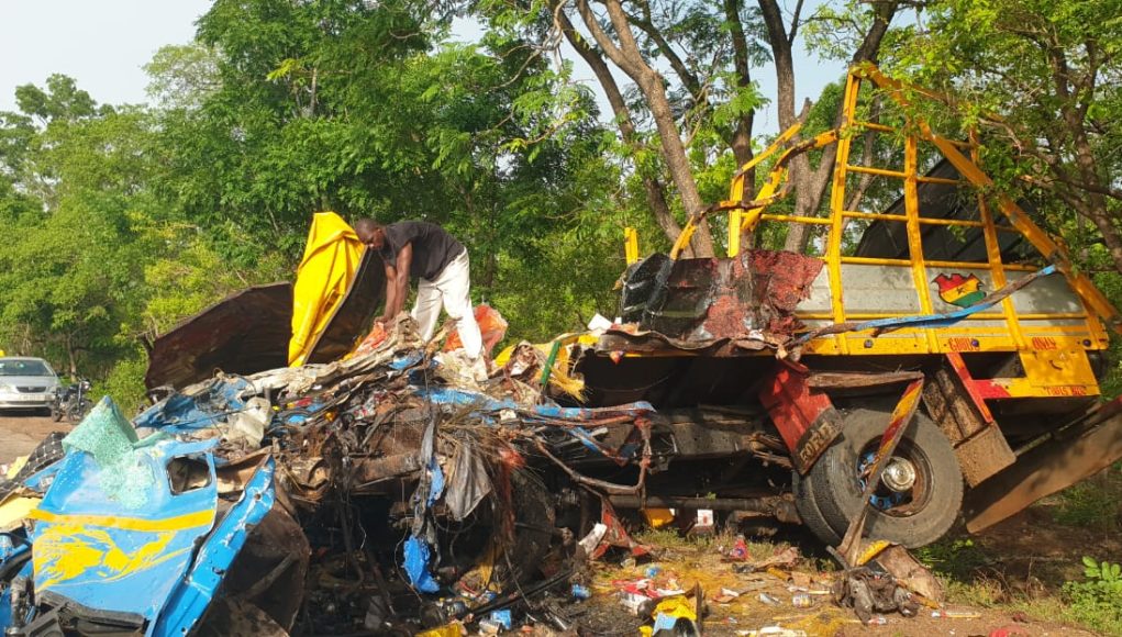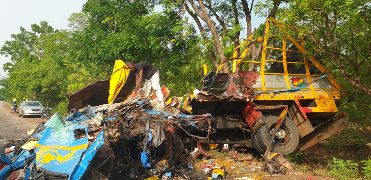 Home Ghana Business News Head-on collision kills nine persons on Kintampo-Tamale Highway on Good Friday Ghana Business News Head-on collision kills nine persons on Kintampo-Tamale Highway on Good Friday By Ghana Newss - 04/04/2026 158 0 FacebookTwitterWhatsAppLinkedinEmailPrintTelegram Head-on collision kills nine persons on Kintampo-Tamale Highway on Good Friday – Ghana Business News Home General News Head-on collision kills nine persons on Kintampo-Tamale Highway on Good Friday Source link RELATED ARTICLESMORE FROM AUTHOR German FA to cooperate with Otto Addo’s anti-racism group Roots Gene-Drive mosquito technology offers new hope in Africa’s fight against malaria President Mahama outlines plans to elevate Kwahu Business Forum - Advertisement -Don't Miss DEVELOPMENT DISCOURSE with Amos SAFO: Gov’t is prioritizing gold over cocoa Ghana Newss - 03/02/2026 Republic vs Ofori-Atta, 7 others adjourned again Ghana Newss - 03/26/2026 Media accreditation now open for Germany-Ghana international friendly Ghana Newss - 03/02/2026 The new real estate frontier: How the economic momentum is reshaping the building and... Ghana Newss - 03/10/2026 The night shift nobody talks about Ghana Newss - 03/06/2026