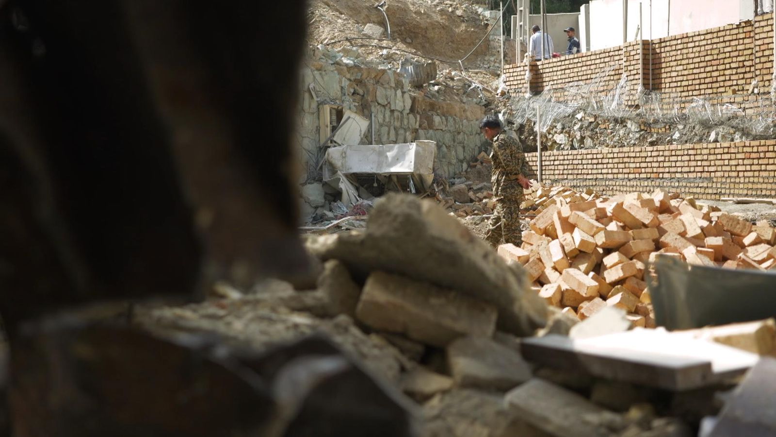 We walked through what’s left of its gates, now a mass of rubble and twisted metal, among just a handful of foreign news media allowed in.