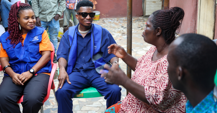 IOM Ghana Goodwill Ambassador and award-winning musician Kofi Kinaata has taken the lead in an advocacy campaign on Mpox preparedness and prevention in Elubo, a major border town between Ghana and Côte d’Ivoire in the Western Region.