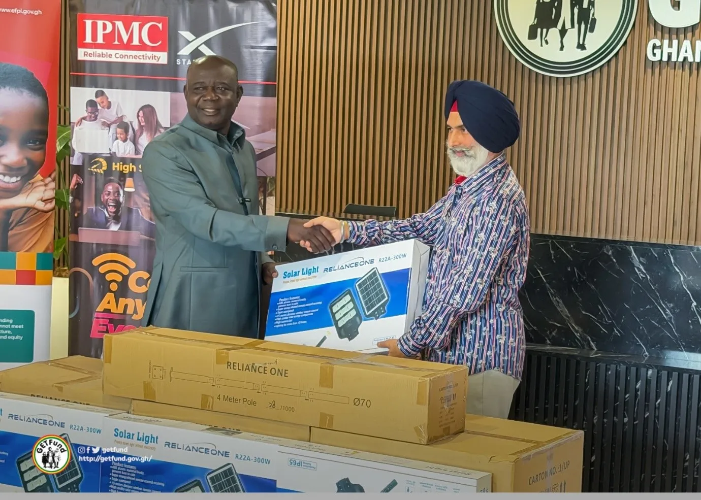 The package includes five complete computer labs with broadband connectivity, 200 solar street lights and an Incinerator. The donation package was received by Mr. Paul Adjei, Administrator of GETFund, in a brief ceremony in Accra.