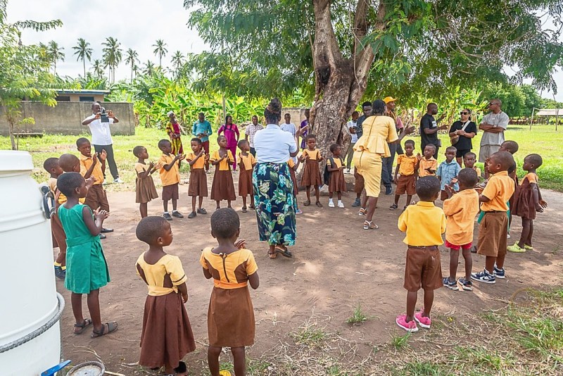 The visiting entourage first stopped at Adaklu Sikama before proceeding to Adaklu Seva, where Ja Rule interacted with teachers and students.