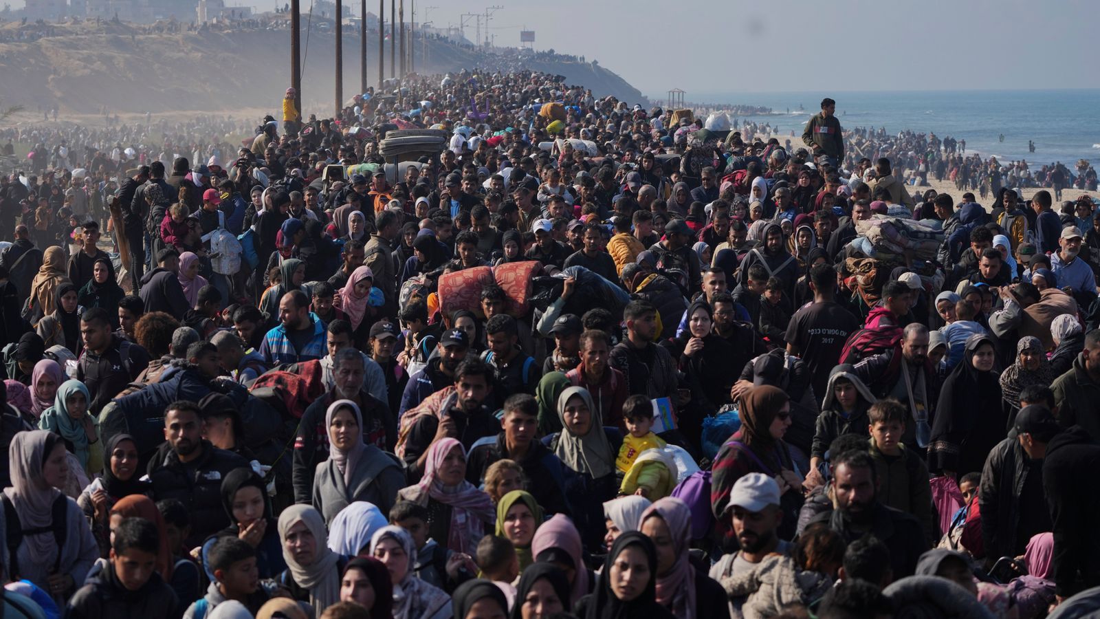 Many had infants in their arms or carried what belongings they could as they journeyed up from southern Gaza on foot after Israel opened crossings on Monday.