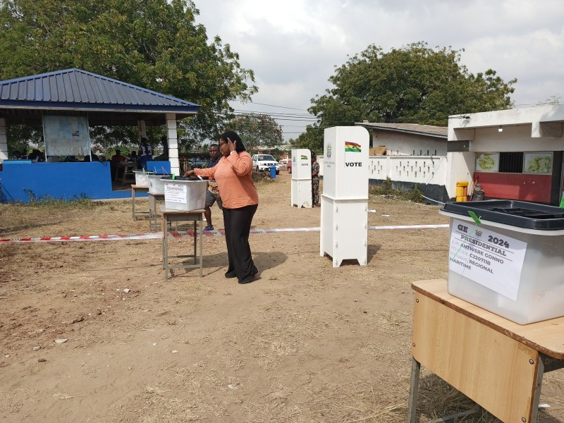 At about 10:4am on December 7, 2024, the Parliamentary Candidate for the Krowor Constituency, Dr. Mrs. Agnes Naa Momo Lartey arrived at the Regional Maritime University which housed four polling stations to cast her vote.