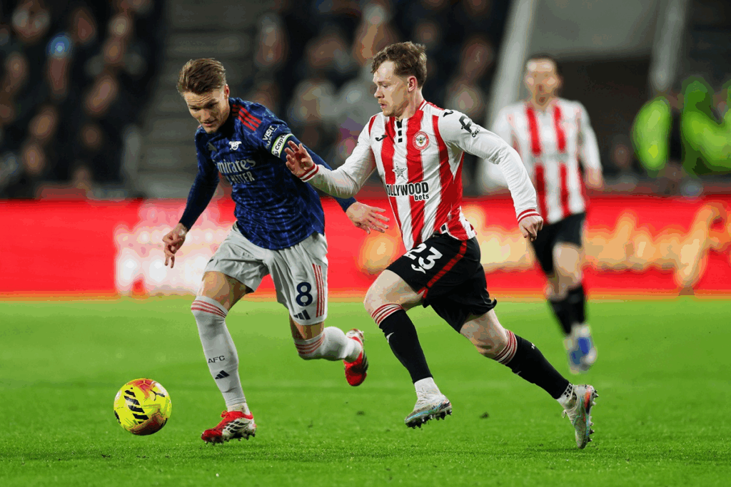Brentford’s press frustrated the Gunners and forced the away side into a couple of loose passes in front of their own goal, which lifted the crowd and boosted confidence.