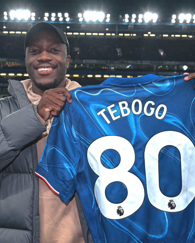 Tebogo was then spotted holding up a customised Chelsea kit with his name inscribed behind, just above the number ’80.’