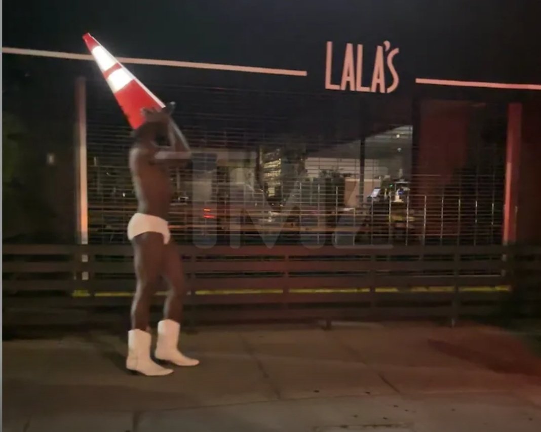 The 26-year-old rapper, known for his hit Old Town Road, was spotted shortly after 4 a.m. wandering down Ventura Boulevard in Studio City, wearing nothing but underwear and cowboy boots, with a traffic cone perched on his head.