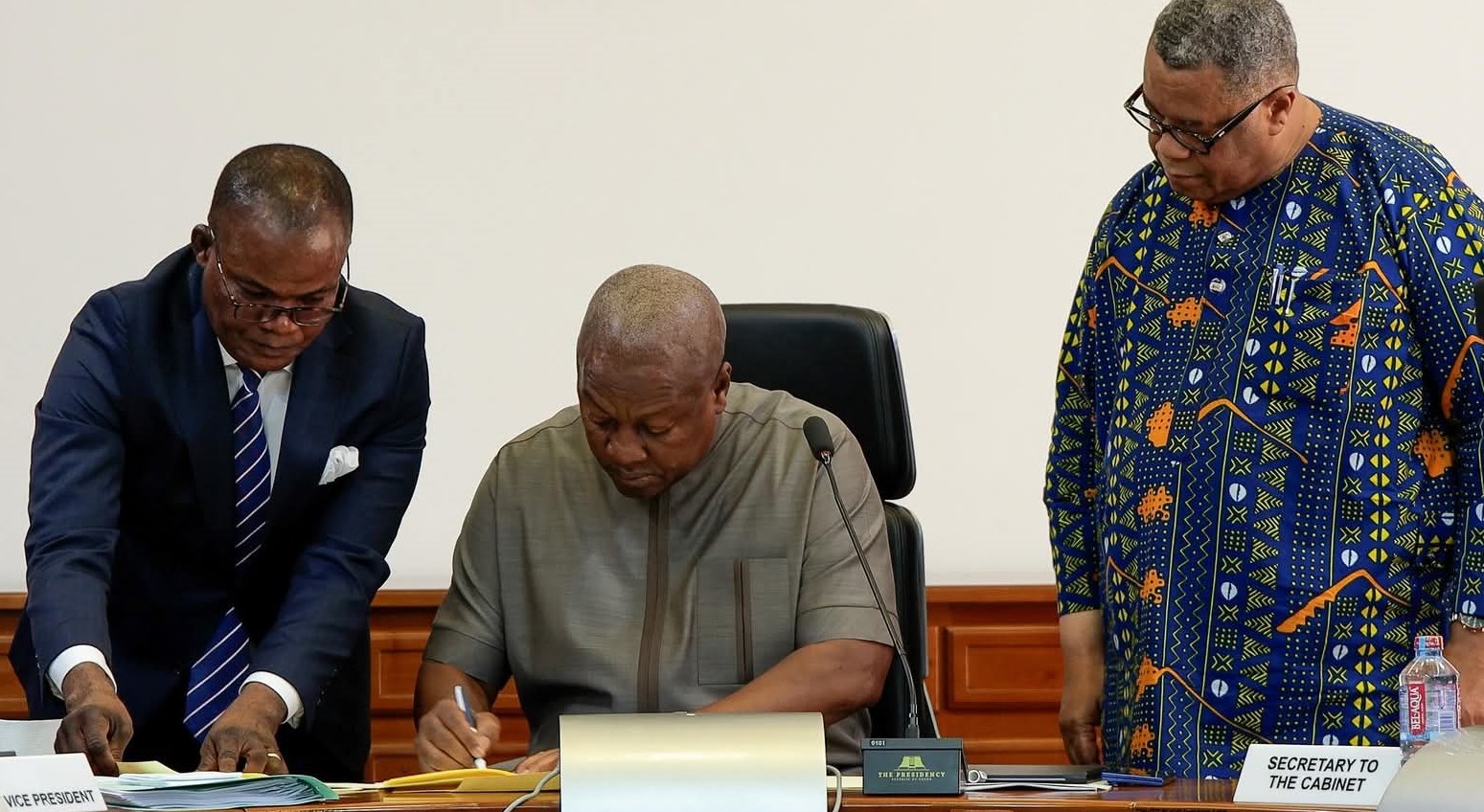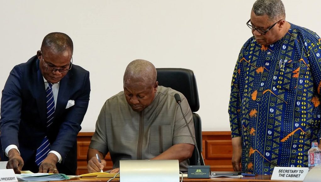 The signing ceremony, held at Cabinet, was witnessed by Vice President Professor Jane Naana Opoku‑Agyemang, Mr Ebenezer Ahumah Djietror, Clerk to Parliament, Cabinet Ministers, and Presidential Staffers.