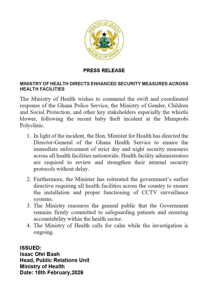 The ministry noted that “In light of the incident, the Hon. Minister for Health has directed the Director-General of the Ghana Health Service to ensure the immediate enforcement of strict day and night security measures across all health facilities nationwide.”