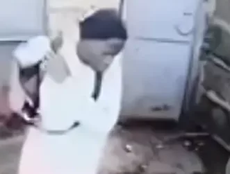 In the clip, the young woman is seen entering a grey gate and looking to see if there was anybody there, then stealthily moving with a load in her bag, unaware that ‘big brother’ is watching her.