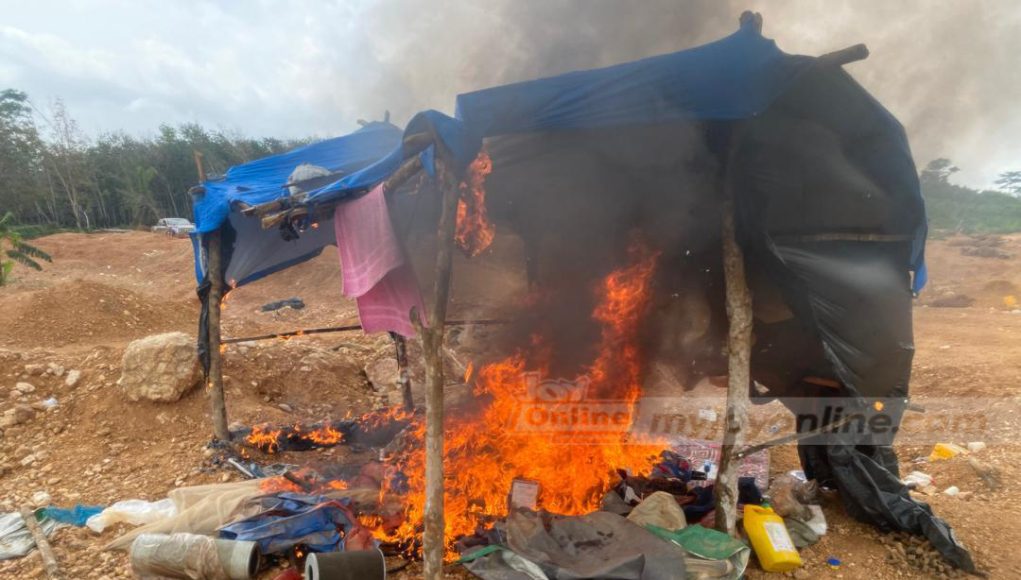 The items were set ablaze to prevent further use by the illegal miners.