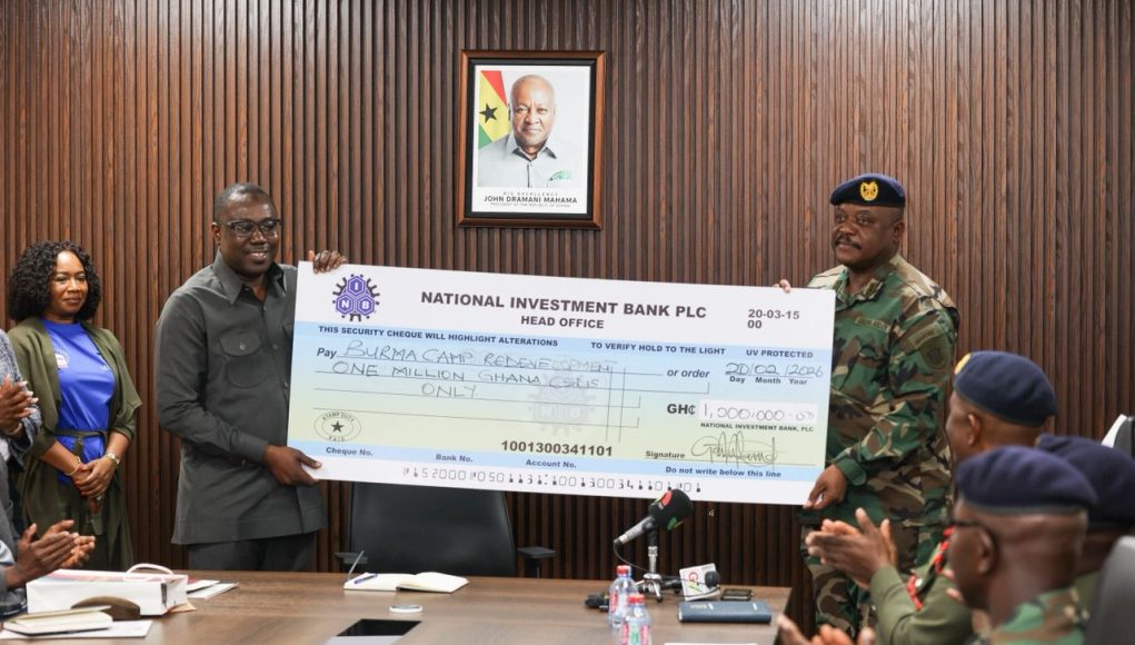 Home Ghana Business News National Investment Bank PLC donates GH₵1m to Ghana Armed Forces for Burma Camp redevelopment Ghana Business News National Investment Bank PLC donates GH₵1m to Ghana Armed Forces for Burma Camp redevelopment By Ghana Newss - 02/23/2026 17 0 FacebookTwitterWhatsAppLinkedinEmailPrintTelegram National Investment Bank PLC donates GH₵1m to Ghana Armed Forces for Burma Camp redevelopment – Ghana Business News Home General News National Investment Bank PLC donates GH₵1m to Ghana Armed Forces for Burma Camp redevelopment Source link RELATED ARTICLESMORE FROM AUTHOR Energy Commission Board engages on draft EV charging infrastructure regulations Respect privacy, protect dignity! – The Business & Financial Times Black Sherif settles GH¢50,696 medical bills at 37 Military Hospital - Advertisement -Don't Miss Rosa in Yaytseslav video ends it all Ghana Newss - 02/16/2026 Unknown persons desecrate graves at Asante Mampong cemetery Ghana Newss - 02/17/2026 Wife dies after confession of having an affair with her hubby’s sales boy Ghana Newss - 02/09/2026 Government declares Wednesdays ‘National Fugu Day’ Ghana Newss - 02/10/2026 Museum of Graffiti Announces Grand Opening of Museum of Graffiti Studios in Wynwood Ghana Newss - 02/09/2026