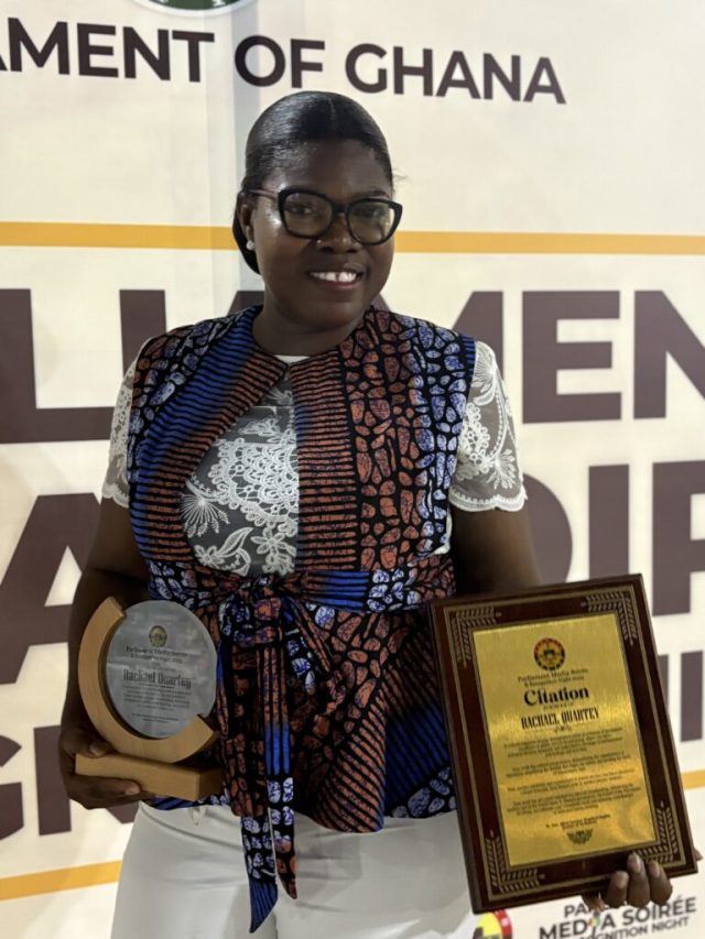 Ms. Quartey, who has reported on Parliament for nearly nine years, was commended for her professionalism, accuracy, and balanced reporting in her work for the state broadcaster. Her reporting has focused on simplifying complex legislative processes, breaking down bills debated in Parliament, and providing fair and factual accounts of parliamentary business.