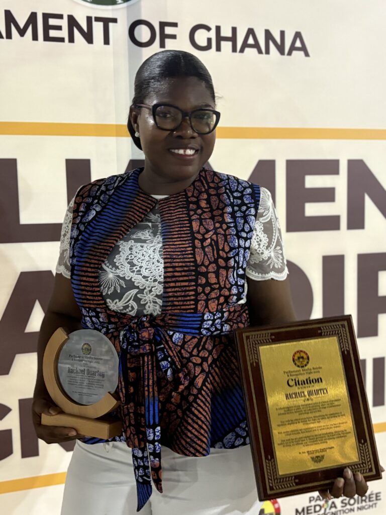 Receiving the award, Ms. Quartey expressed gratitude to Parliament and the Ghana Broadcasting Corporation, describing parliamentary reporting as one of the most demanding beats in journalism.