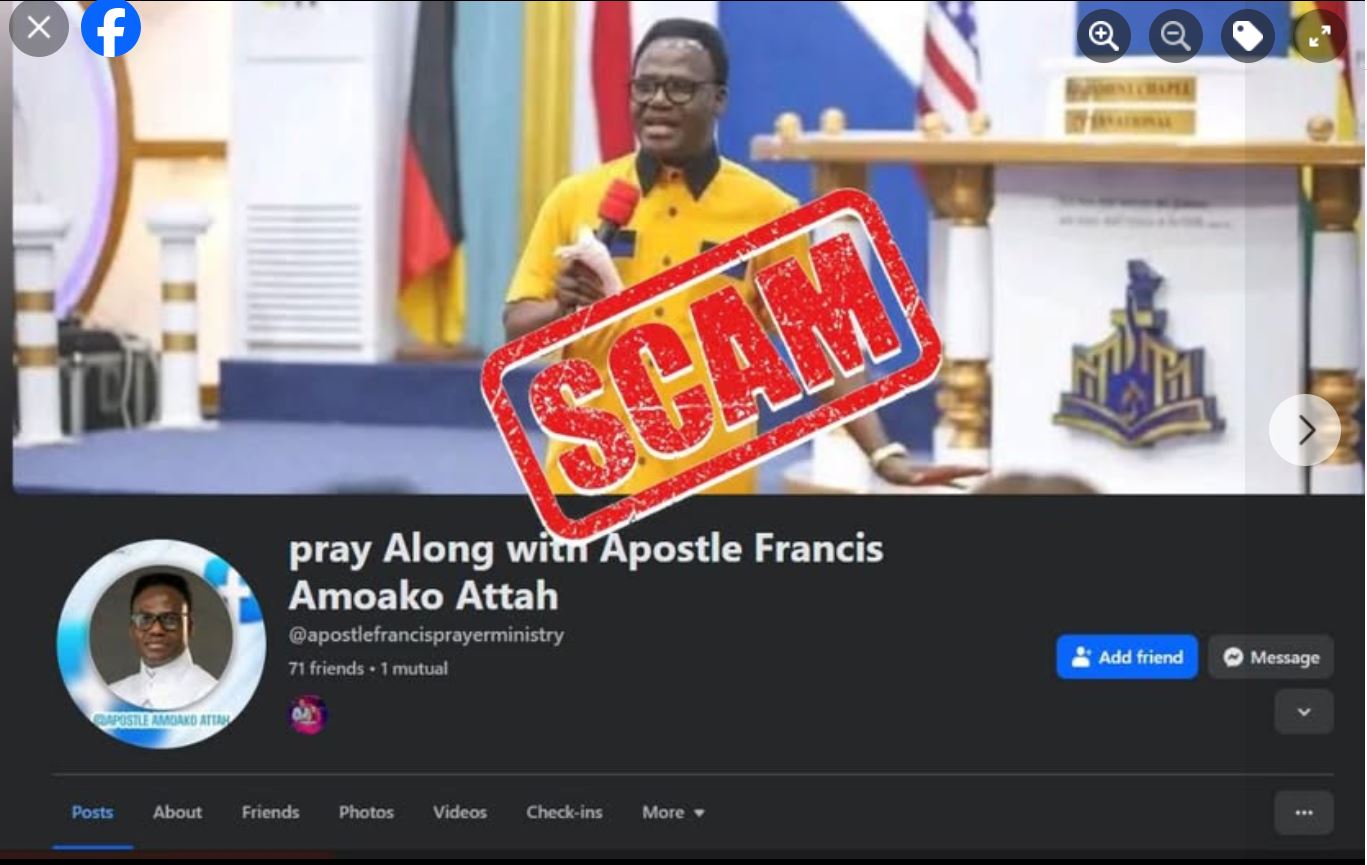 “Our attention has been drawn to an account on Facebook falsely claiming to represent the prayer ministry of Apostle Francis Amoako Attah. We wish to state categorically that this page is not associated in any way with the Apostle or Parliament Chapel International,” the statement read.
