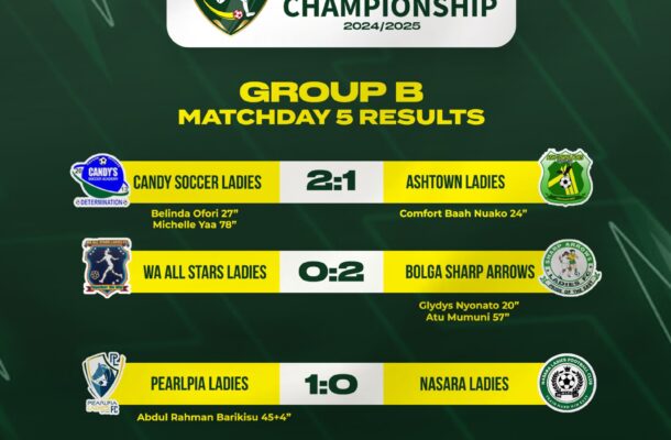 In the other match in the Zone, Bolga Sharp Arrows registered their first win, beating Wa All Stars Ladies and condemning the latter to a winless campaign, with 28 goals conceded.