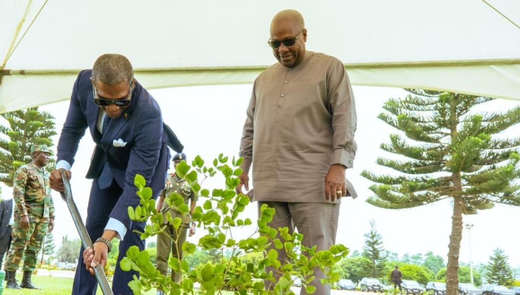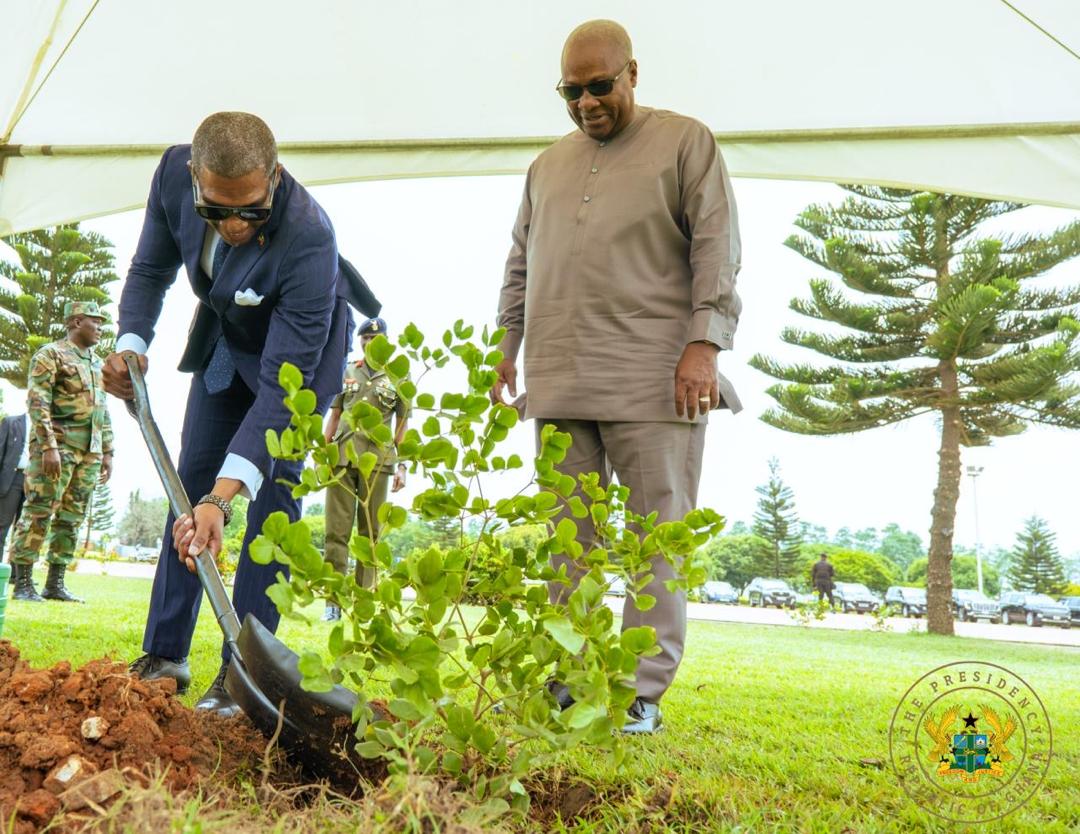President John Mahama, accompanied the Prime Minister of Saint Kitts and Nevis, Dr Terrance Michael Drew, planted the symbolic “Tree of Life” at the Presidential Gardens at Jubilee House as part of the Prime Minister’s official state visit to Ghana.