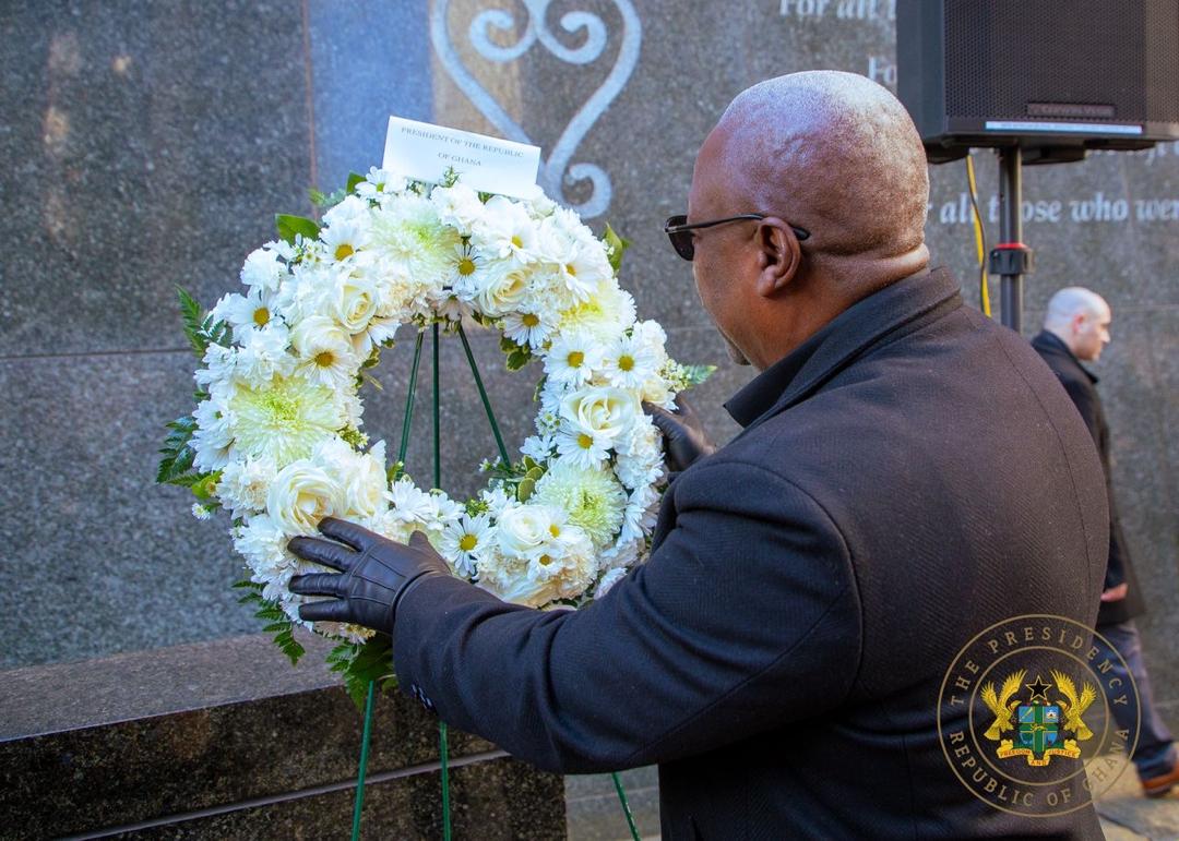 President John Mahama on Tuesday, March 24, led a solemn wreath-laying ceremony at the African Burial Ground National Monument, honouring the memory of enslaved Africans and reflecting on their enduring legacy.