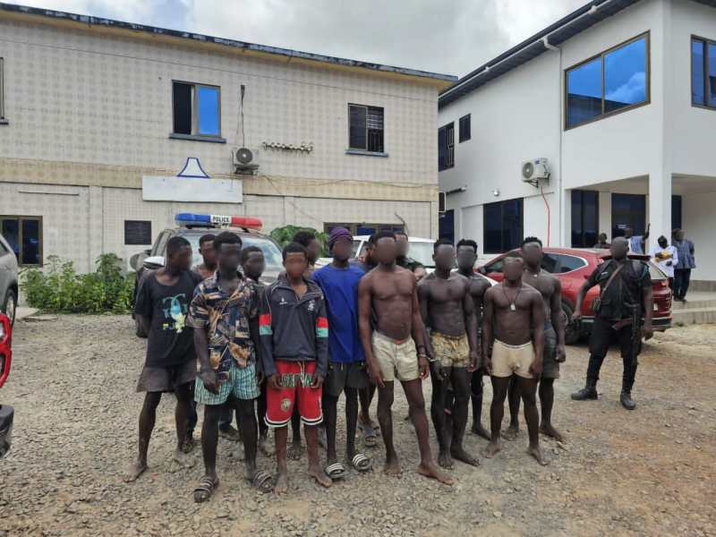 At Akrokerri in the Ashanti Region, the Ashanti South Regional Police Command arrested nine individuals in connection with illegal mining operations.