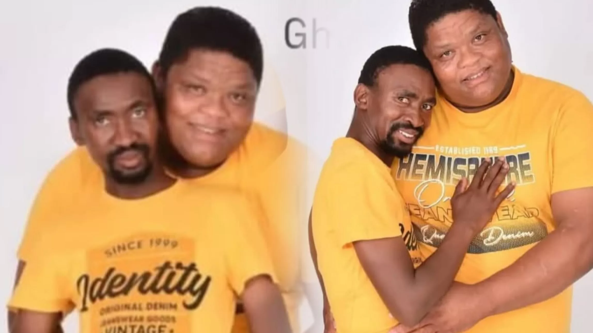 In the pictures, the two men are seen wearing yellow shirts as they pose for the camera.