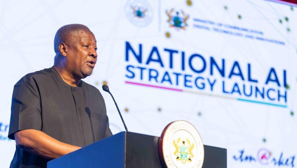 Home Ghana Business News President launches Ghana’s National AI Strategy, announces $250m AI Computing Centre Ghana Business News President launches Ghana’s National AI Strategy, announces $250m AI Computing Centre By Ghana Newss - 04/25/2026 154 0 FacebookTwitterWhatsAppLinkedinEmailPrintTelegram President launches Ghana’s National AI Strategy, announces $250m AI Computing Centre – Ghana Business News Home ICT President launches Ghana’s National AI Strategy, announces $250m AI Computing Centre Source link RELATED ARTICLESMORE FROM AUTHOR Experts outline path to legal cannabis market in Ghana Kelewele, a spicy heartbeat Ghanaian street cuisine Over 900 students graduate with various degrees from UDS - Advertisement -Don't Miss This Saturday on Prime Insight: Experts delve into SIM registration woes and surging fuel prices Ghana Newss - 03/21/2026 US Court backs extradiction of former MASLOC CEO Sedina Tamakloe-Attionu’s to Ghana Ghana Newss - 04/12/2026 Criticism made me tougher, says Joseph Opoku after crucial match-winning brace Ghana Newss - 04/14/2026 WAEC releases 2026 private WASSCE results, results of 87 candidates withheld Ghana Newss - 04/02/2026 Government will not appoint more than 60 ministers – Ayariga Ghana Newss - 02/22/2026