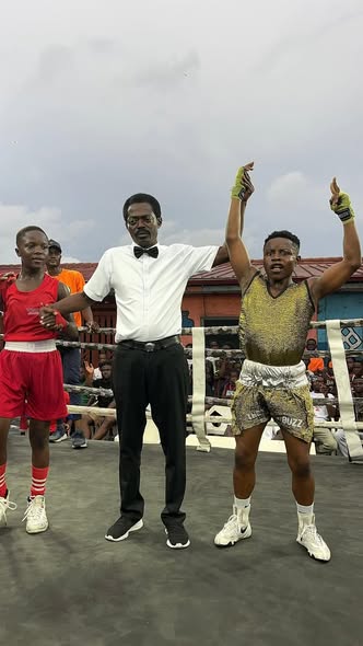Representing Will Power Boxing Club, Larbie faced Jeffrey Sowah of Wisdom Boxing Gym in an intense juvenile final. From the opening bell, Larbie imposed his aggressive style, overwhelming his opponent with power punches and relentless pressure.