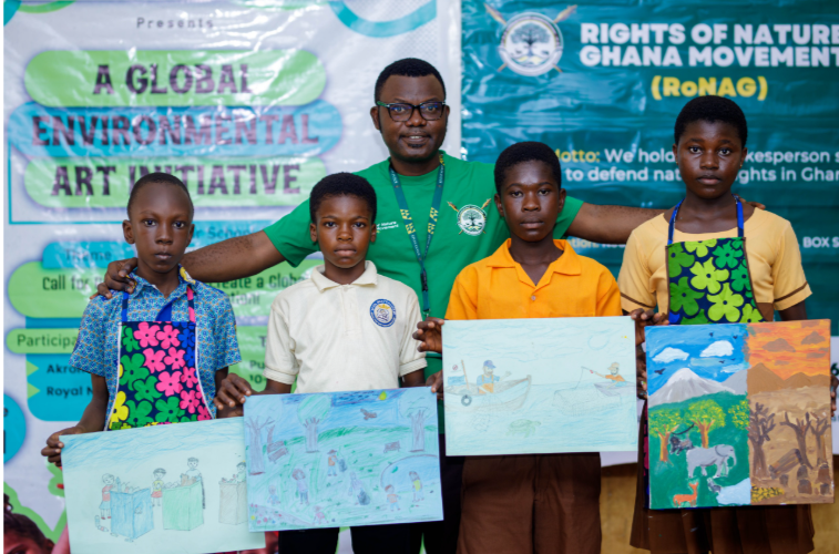 The schoolchildren, under the coaching of members from RoNAG’s Youth Wing, Marvellous Mensah, Maureen Jones Nkrumah and Kelvin Boateng and the teachers from participating schools, were helped to accompany their drawings with relevant themes that resonated with the schoolchildren’s motivations for their artistic creations such as “Protect Nature, Protect Our Future” and “Stop Ecocide—Save Our Planet,” reinforcing the messages behind their artwork.