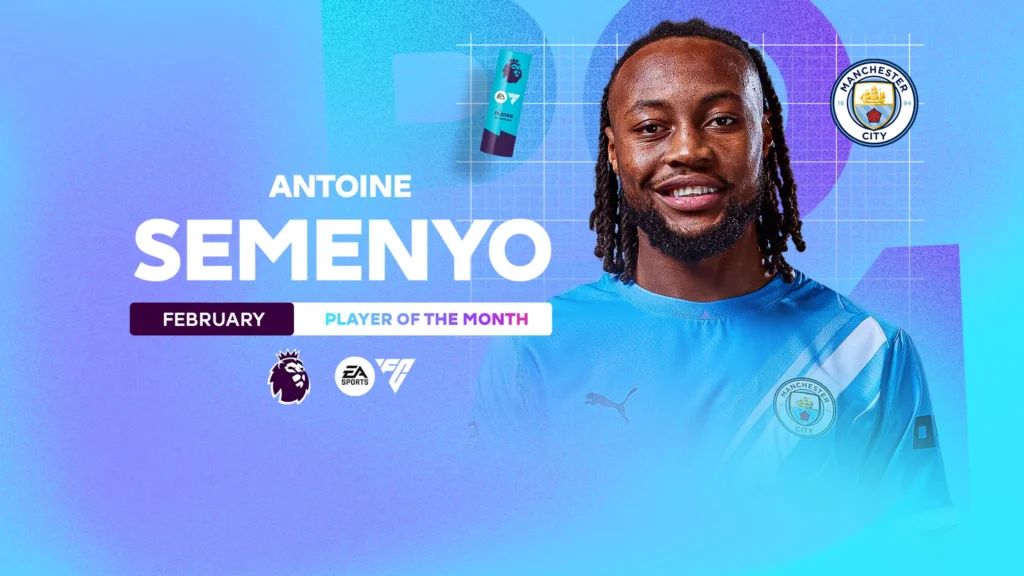 Manchester City attacker Antoine Semenyo has won the February EA SPORTS Player of the Month award, capping an impressive first full month at the club after joining from AFC Bournemouth in January.