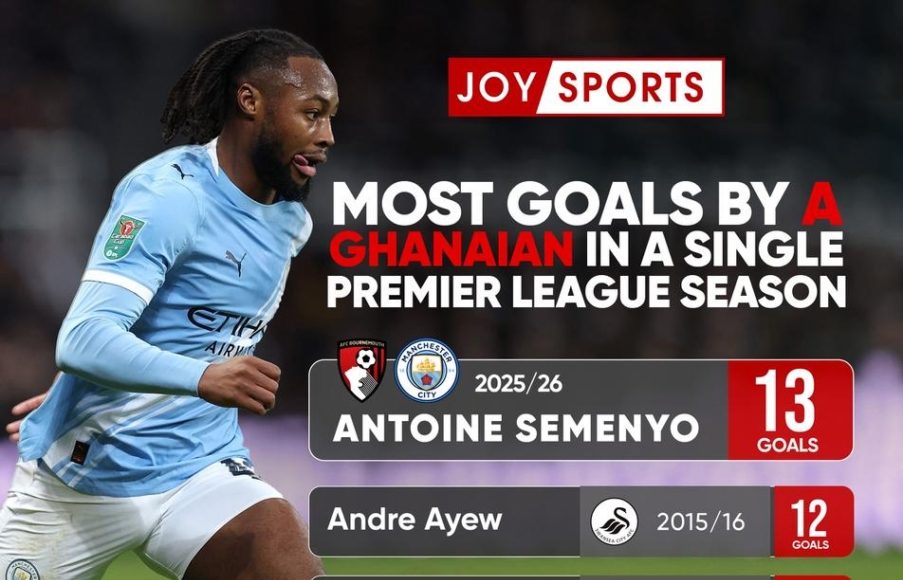 Semenyo has netted 13 times this season, making him the first Ghanaian with the most goals in a single Premier League campaign.