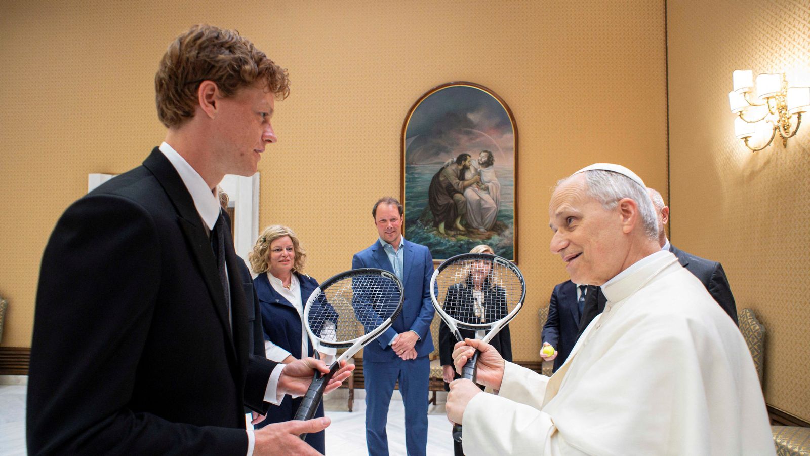 Italian tennis star Jannik Sinner beamed as he met the newly elected Pope Leo in the Vatican.