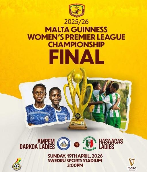 The Swedru Sports Stadium will host the final of the Malta Guinness Women’s Premier League for the 2025/26 season, as Ampem Darkoa Ladies take on Hasaacas Ladies on Sunday, April 19.
