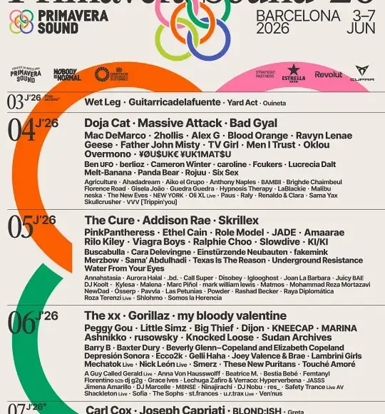 Primavera Sound Barcelona 2026 has the support of Estrella Damm, Revolut, CUPRA and Occident as key strategic partners. Their backing makes it possible for us to continue improving the festival, in which we believe so much, both musically and in everything that surrounds it. They are joined by the essential collaboration of Levi’s, Schwarzkopf, Jameson, Aperol, Vueling, azulmarino, Red Bull and adidas, and Fever as the official point of sale. Thank you all very much for your faith in Primavera Sound.