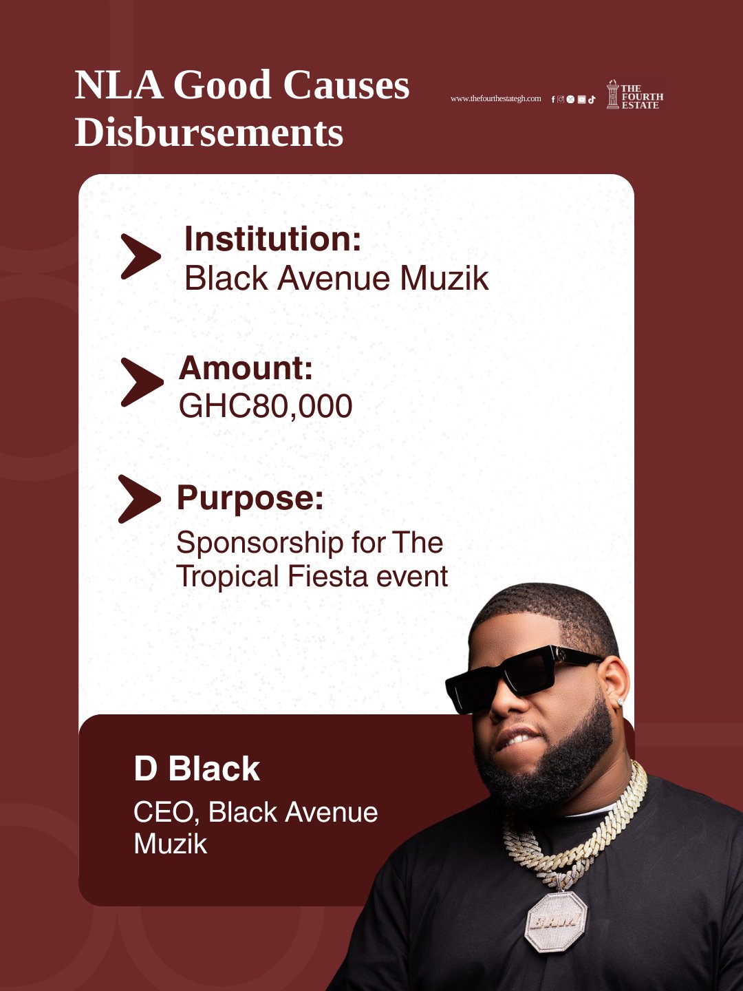 According to the report, The Fourth Estate claimed that D-Black received GH₵80,000 as support for his Tropical Fiesta event.